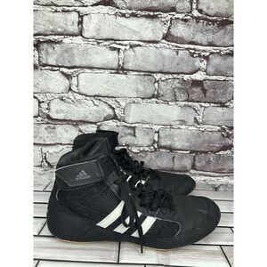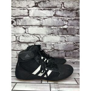 Selling ADIDAS Black Suede White Stripes Strap Lace Up Wrestling Shoes Men Sz 7M US/40EU