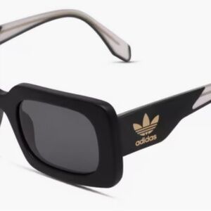 Stylish black sunglasses paired with a vibrant blue case. Perfect for any occasion.