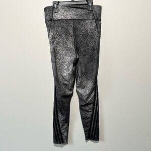 ADIDAS- Black and Gray Aero Ready Striped Leggings Size M