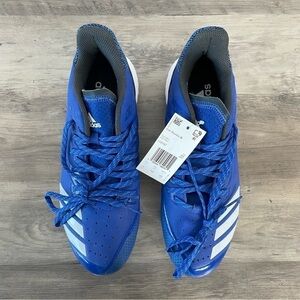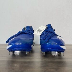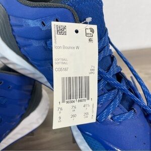Blue, black, and white with blue shoelaces. Men’s size 9 or women’s size 11.