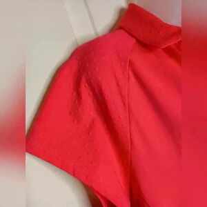 sporty,textured, conservative, minimalist,office,business,career,polo, button up, dopamine,salmon
