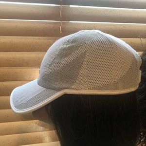 GRAY AND WHITE WITH EMBROIDERY LOGO NAME ON FRONT. ADJUSTABLE FITTING STRAP ON BACK. PHOTOS DETAIL THE DESIGNS ON THE CAP. UNISEX. ONE SIZE FITS ALL