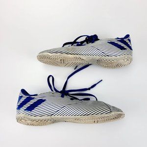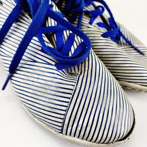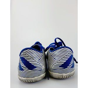 CHUTEIRA NEMEZIZ 19.4 FUTSAL Blue White Shoes 2.5 Youth Sports Soccer EF1754 - Lace up closure, blue and white with striped pattern, rounded toe, Low cut - For playing on indoor pitches - Synthetic upper - Non-Marking Rubber Sole -