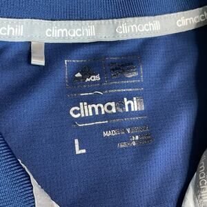 ADIDAS CLIMACHILL Blue White Striped Short Sleeve Golf Polo Men’s Size Large