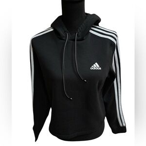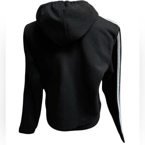 Stylish cropped Adidas hoodie. Features iconic white stripes. Comfortable and trendy, crop/ midriff top, comfy, casual, trefoil logo on front. Good condition, 100% polyester, (like sweatshirt material.) Measurements are pit to pit 20” Length 20.5 “