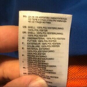 Size small Adidas Climacool blue and orange windbreaker jacket. Full zip front with zipper closure pockets in front.