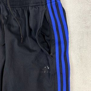 ADIDAS Climalite Y2K Performance Athletic Casual Tapered Track Pants Black with Blue Stripes on Sides and zipper pockets!