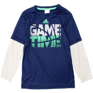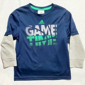 ADIDAS- Climate Boy's "Game Time" Graphic- Long Sleeve Tee- Blue- (Size 4T)