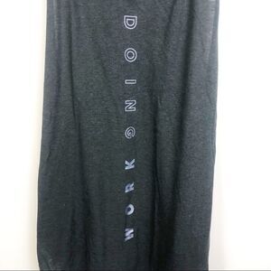 Super cute lightweight racer back tank top by Adidas. Black base with bluish purple graphic that says doing work down the front. Sleeveless. Climalite moisture wicking fabric. Roomy fit. Great preowned condition. Women’s size large.