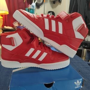 ADIDAS FORUM SCARLET RED. Shoes are brand new never worn. shies will be sealed in a bag and then double boxed when shipped. shoes will be shipped with original box and packaging. if u have any questions feel free to ask.