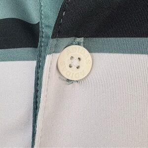 Stylish Adidas polo with bold green and white stripes. Perfect for casual wear. Comfortable and trendy.