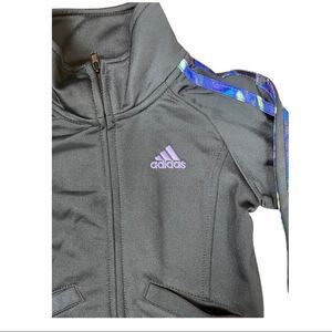 ADIDAS Girls Black Track Jacket Size 2T Full Zip Logo Three Stripe Purple