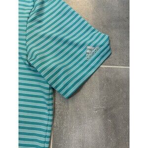 ADIDAS Golf Polo Mens Large Aqua Blue Stripe Short Sleeve Performance Shirt