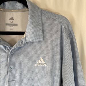 ADIDAS Golf Polo Men's Medium Blue Polka Dot Short Sleeve Soft Collared