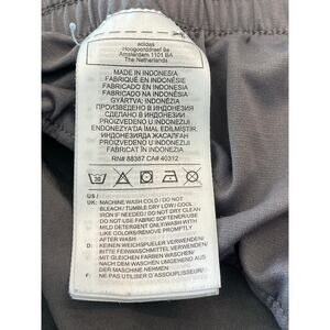 These running shorts are in excellent pre-owned condition as far as fabric, shape, color, panties etc. The only thing showing wear is the reflective adhered logo strips. If you wear these types of shorts often then you know that part of the clothing wears quickly from washing and starts to peel. this does not affect the wearing of the garment and they still look great otherwise. see photos for extent of the lettering peeling off