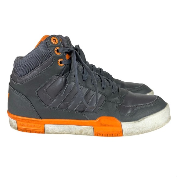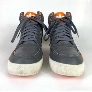 ADIDAS HIGH TOP GRAY WHITE AND ORANGE SNEAKERS MEN’S SIZE 8.5