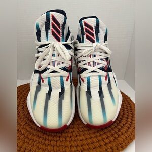 These adidas Harden Vol. 4 GCA 'Dynasty Rockets' sneakers feature a lace up design and a low top silhouette.