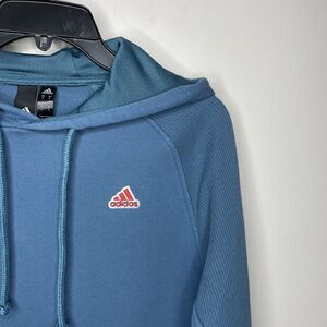 ADIDAS Hoodie Mens Small S Rib Pullover Sweatshirt Logo Cotton-Blend Blue-Green