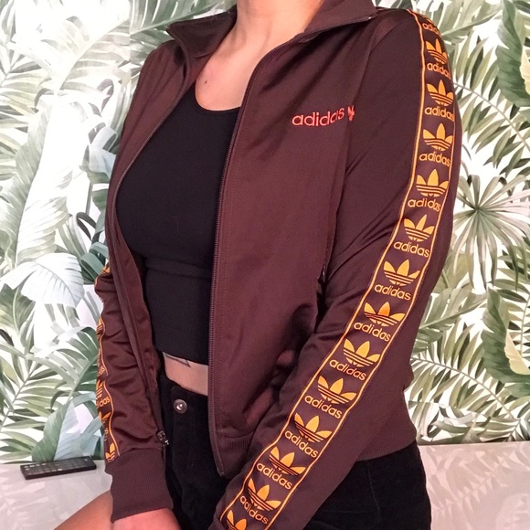 Brown track jacket with original ADIDAS Trefoil symbol in orange