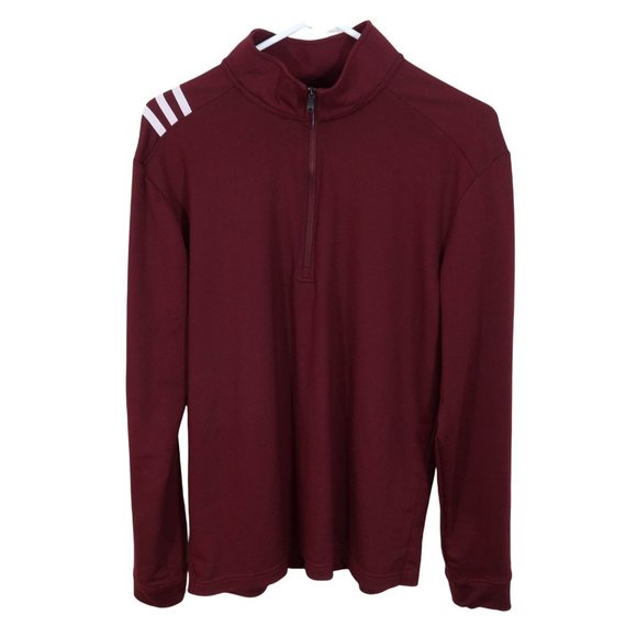 ADIDAS L Burgundy White Three Stripe Shoulder 1/4 Zip Moisture Wicking Jacket