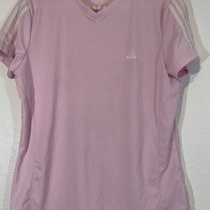 ADIDAS - LARGE - PINK / WHITE - V-NECK SHORT SLEEVE ATHLETIC TOP