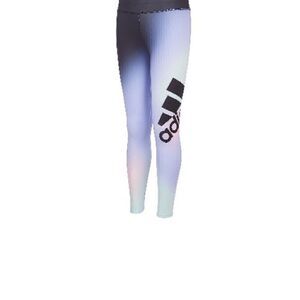 These girls tights can't help but make a style statement. Bold Ombre graphics and an oversize adidas badge of sport refuse to go unnoticed. AEROREADY technology wicks away moisture so she'll stay comfortable. Fitted fit hugs the body from hip to ankle Aeroready technology pulls moisture away from the skin, elastic waist Allover Ombre print angled adidas badge of sport screen-print above the left knee Polyester, Elastane Printed Jersey Machine Washable Imported Web ID: 12679260