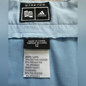 ADIDAS Long Stretch Golf Skort Skirt Pickleball Tennis Golf Back Zipper Pockets Color Blue Jay Size 12 Excellent Condition 2736