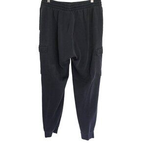 Stay comfortable and stylish with the ADIDAS Men's Navy Sweatpants. These pants feature an elastic waist, tapered cuff legs, and side pockets for your convenience. Ideal for casual wear or workouts. Size large.