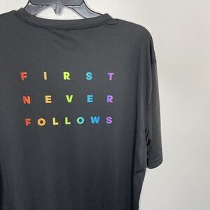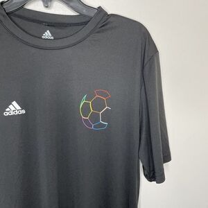 ADIDAS Mens Black Soccer Performance Graphic Tee Sz L FIRST NEVER FOLLOWS