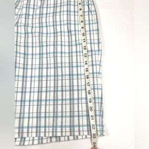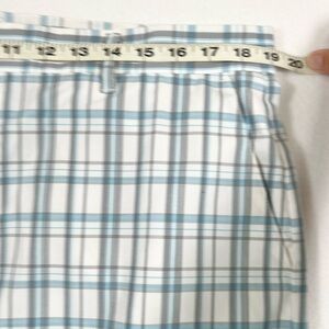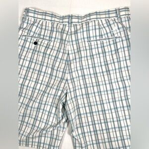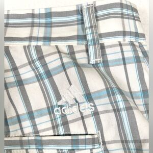 ADIDAS Men’s Flat Front Shorts Blue Gray Plaid Casual Size 35 Athleisure Golf