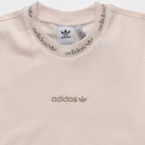 A soft cotton tee with ADIDAS pride woven into the seams. When it comes to the basics, it's all about the details. This short sleeve t-shirt is embroidered with an adidas linear logo along the crewneck, so it looks good peeking out from under other layers. More embroidery along the front chest adds to the simplistic style.
