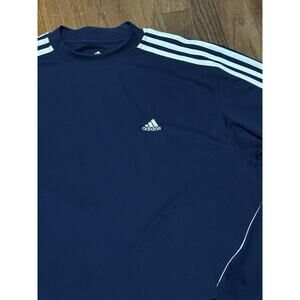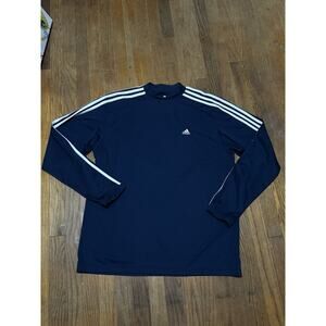 Elevate your activewear game with this classic ADIDAS hoodie. The Men's Long Sleeve Classic 3-Stripes Crew Night Indigo & White in size XL boasts a solid pattern, crew neck, and long sleeves. It features a breathable design that makes it perfect for all seasons, whether you're going for a run, playing soccer, or just running errands.
