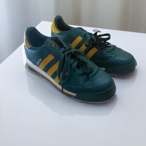 ADIDAS Men's Retro Orion Green with Yellow Gold 3 Stripe. Very vintage from 20 years ago or more. Only been worn twice. They were bought for a photoshoot and have not been worn or used since. Size 10. Low Top