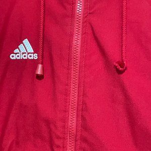 ADIDAS Men's S Hooded Medium Weight Jacket Coat Red White Embroidered