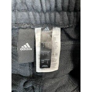 ADIDAS Men's Sport Shorts in size Small, designed in black cotton jersey fabric. These athletic shorts feature a drawstring closure, a regular fit with an adjustable waist, and convenient pockets. Perfect for casual wear during the summer and spring seasons, these designer sports shorts by ADIDAS offer comfort and style for men who enjoy an active lifestyle.