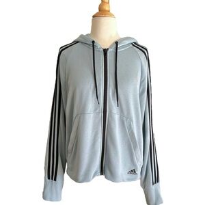 ADIDAS Must Haves 3 Stripe French Terry Hoodie Track Jacket Athleisure Sz Large