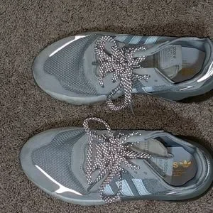 ADIDAS NITE RUNNER men's size 8.5, gray with gold on back heel. worn 1 time excellent condition