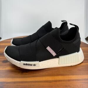 ADIDAS NMD R1 WOMEN’s Size 8.5 Black White Running Shoes Slip On EUC