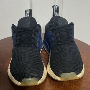 🔥🔥 ADIDAS NMD R2 Women Low-Top Sneakers - Black/Blue - Sz 7 - Good Condition