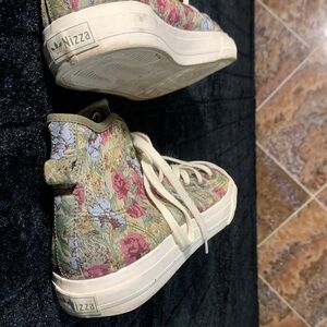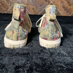 The adidas Nizza Hi offers a nostalgic feel with a grandmother's couch-feeling. The high-top shoe from the three stripes features countless colors with a floral print with the matching fabric. Crafted with recycled content this retro sneaker sports a signature rubber toe overlay and vulcanized midsole to stay core to its skateboarding roots.