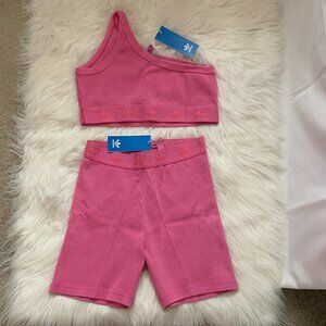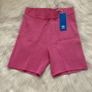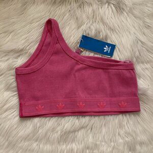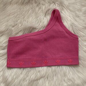 ADIDAS ORIGINALS Ribbed One-Shoulder Bra Top & Booty Biker Short Set in Fuchsia