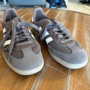 adidas Originals' 'Samba OG' sneakers debuted in the '50s as a low-profile soccer style - today you'll spot them off the field worn with everything from dresses to tailored pants. This pair is made from crochet trimmed with leather and suede and detailed with the brand's signature '3-Stripes'.