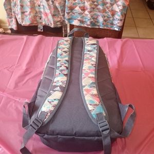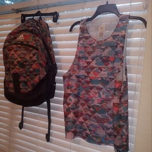 RARE CUTE ADIDAS 4 PIECE OUTFIT. GREAT CONDITION. LARGE RARE MATCHING BACKPACK HAS 3 ZIPPER COMPARTMENTS ON FRONT 2 NETS ON BOTH SIDES 1 LUGHT OPEN COMPARTMENT ON INSIDE WITH A SMALL STAIN ONLY YOU WILL SEE. THIS BACKPACK IS BIG AND NICE. THE LEGGINGS AND JACKET IS MEDIUM. THE MATCHING TINK TOP IS LARGE. HEAD TURING OUTFIT. LIGHT BLUE TURQUOISE AND PINK.