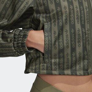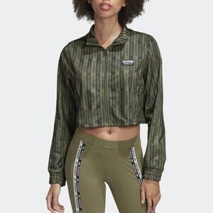 ADIDAS Originals Green and Black Brand Logo Striped Crop Track Top Size M | NWOT