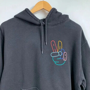 ADIDAS Originals Hoodie Peace Sign Trefoil Logo Fleece Sweatshirt Size L