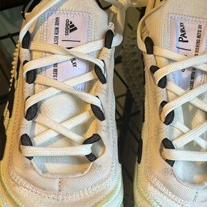 Move with intention. These running shoes have an adidas 4D FWD midsole with angled lattice supports that glide your foot forward, making every stride feel easy. Yarn in the sock-like upper is made using gill nets collected from the oceans. This shoe's upper is made with a high-performance yarn which contains at least 50% Parley Ocean Plastic. The other 50% of the yarn is recycled polyester.