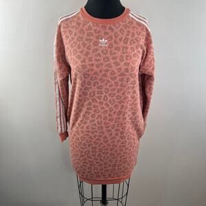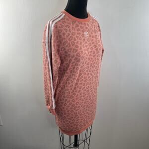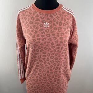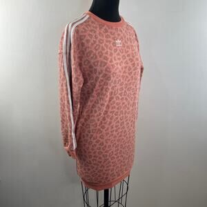 Adidas Pink Dress Cotton Leopard Allover 3-Stripes Ribbed Crew Neck Size Medium
