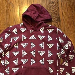 ADIDAS Pullover Hoodie with ADIDAS Logo Burgundy and White Sz Large NWOT