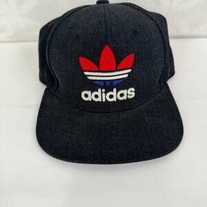 ADIDAS Red White Blue Trefoil Embroidered SnapBack Hat Grey Wool Blend