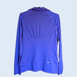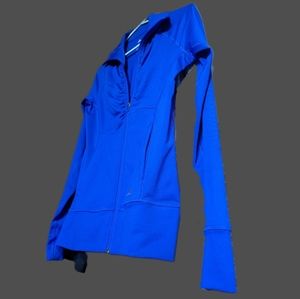 Women's fitted jacket in the most royal of blues. Thumb holes, smooth rubberized zip, pockets and technology driven Climalite to keep you comfortable. Women's small, runs bigger with room for layers and easy movement. Lovely condition!